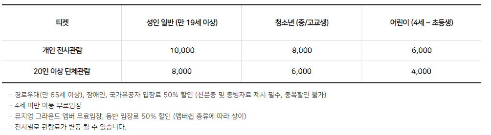 ※ 특별기획전의 경우 휴무일이 달라질 수 있습니다.