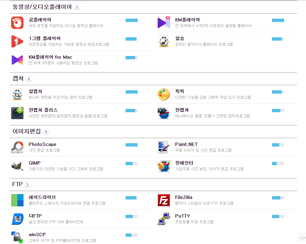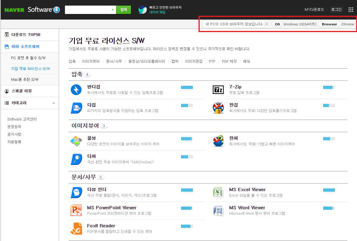 다음과 같이 무료 S/W 리스트를 확인할 수 있으니 이중에서 필요한 프로그램을 사용하시면 됩니다.