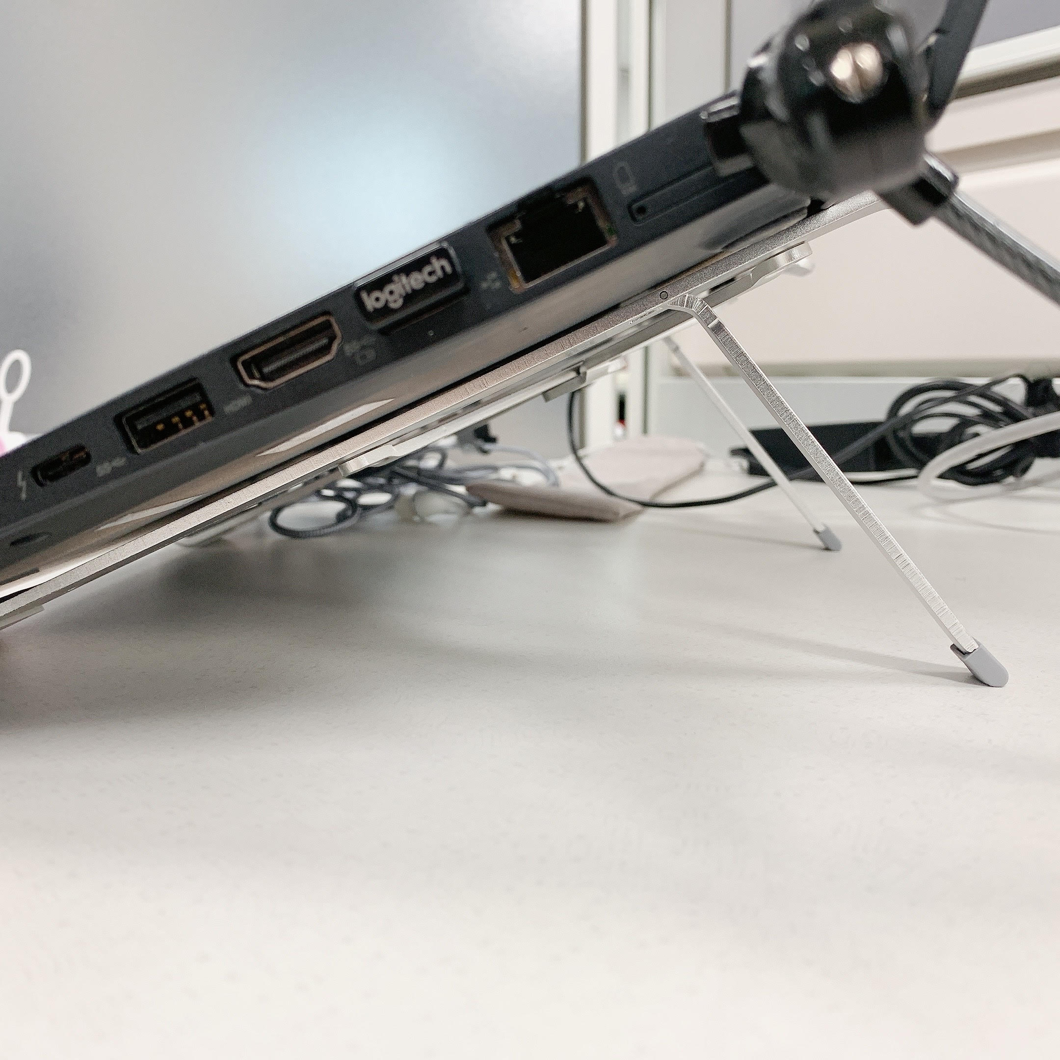 하는 일이 본사에서 하는 것보다 외부 프로젝트 많이 하고 노트북을 가지고 다니다 보니 바닥에 두고 노트북을 이용하기에는 조금 불편한 점이 있어서 노트북 거치대를 찾다가 휴대하기 좋은 제품이 있어서 구매하게 되었습니다. (약 1년 정도 사용)