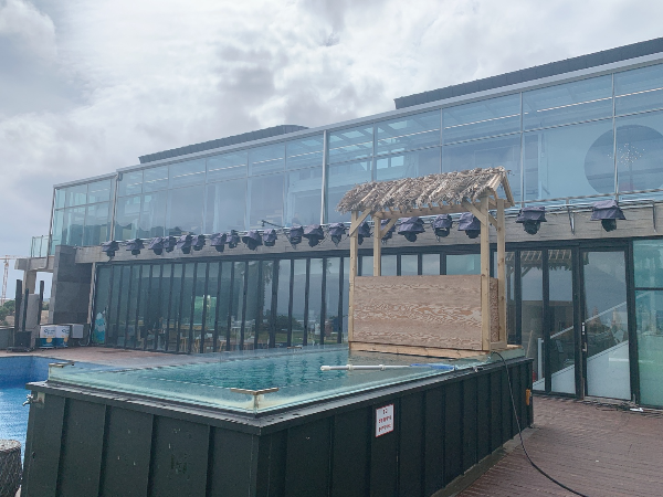 공간 자체가 바다를 배경으로 지어져 있고 배치가 되어 있기 때문에 시원한 바다 배경으로 커피를 즐기실 수 있습니다.