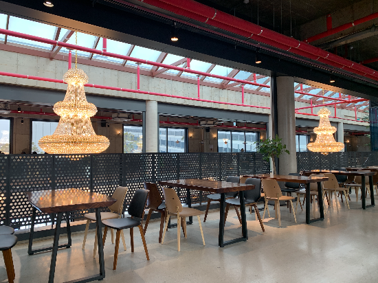 건물이 전체 2층으로 구성되어 있으며, 테이블의 위치나 간격도 충분히 넚어서 좋습니다.